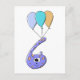 En tecknad av ett monster i form av nummer 6. Designad för en liten 6e-födelsedag. Detta nummer 6-födelsedagstecken är i lila med ljusa orangar och tre färgstarka ballonger.