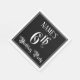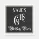 Den pappra napkin-designen som är utvecklad och opulent på födelsedagen har en personlig namn och meddelandet "6e Födelsedagsfest". Det stora antalet "6e" och "Födelsedagsfest" i ord står i texten till finare, skript-stil. Bakgrunden är färgadens svarta som standard (även om den kan anpassas). Finare, utvecklade pappra blöjor av det här slaget kan användas vid en födelsedagskalender för att hedra någons sjätte födelsedag. [~Z0000563]