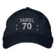 70 Anpassat namn NAVY BLUE Hat SILVER Embroidery med STARS Roligt-födelsedag som du kan anpassa med en känsla, namn och år. All text är helt anpassade, så den passar också för en 71 72 73 74 75 76 77 78 och 79-årsdag, eller vilket annat år som helst. Du kan också ändra hatten färg, hatten stil eller tråda färg för ett annat utseende.