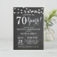 70-års bröllopsdag inbjudan. Kritstavla bakgrund. Strängljus. Svart och vitt. 1:a, 2:a, 3:e, 4:e, 5:e, 10:e, 15:e, 20:e, 25:e, 30:e, 35:e, 40:e, 45:e, 50:e, 55:e, 60:e, 65:e, 70:e, 75:e, 80:e, Alla år. Födelsedagsfirande för vuxna. Kvinnlig eller manlig födelsedagsfest. För ytterligare anpassning, klicka på "Anpassa"-knappen och använd vårt designverktyg för att ändra denna mall.