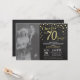 70-års bröllopsdag med anpassad bild. Kritbräda svart och guld inbjudan. Sjuttio års bröllopsdag. Kritbräda svart och guld glitter diamant bakgrund. Guldkonfetti. Vuxen födelsedag. Kvinna eller man manlig födelsedagsfest. För ytterligare anpassning, klicka på "Anpassa"-knappen och använd vårt designverktyg för att ändra denna mall.