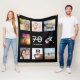 En present till en kvinna på hennes 70-årsdag, som firar hennes liv med en kollage av 8 av dina foton. Mallar för ett namn, ålder 70 och ett datum. Födelsedatum eller årsdagen. Vita och gråa bokstäver. Svart bakgrund.