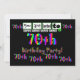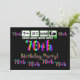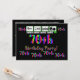 Denna moderna design med sin roliga regnbågsskrivning är ett roligt sätt att inbjuda folk till en ÖVERRASKNINGS-födelsedagsfest. Denna födelsedagsinvitation finns på ett isfärgat metalliskt papper som ger din födelsedagsinbjudan en festlig glans och lyster och får regnbågsskrivningen att "poppa". Du kan experimentera med olika papperstyper genom att klicka på fliken "Inbjudningsalternativ" i det övre högra hörnet.
