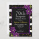 70-års överraskningsfest | Svart och Guld Glitterdesign med Lila Blommig Detalj . Det här är en mall som är redo för att du ska lägga till din festinformation till .