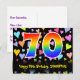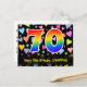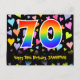 Framsidan av denna kärleksfulla, färgglada och roliga födelsedagstema postkortsdesign har ett stort nummer "70" med ett regnbågsspektrum gradientinspirerat mönster. Den har också meddelandet "Happy 70th Birthday," och ett personligt mottagarnamn. Framsidan har dessutom ett livfullt och färgglatt kärleksfullt hjärtbakgrundsmönster. Baksidan har ett anpassat födelsedagsmeddelande, eller kanske kan rensas och lämnas tomt om ett meddelande ska skrivas för hand istället. Ett personligt födelsedagskort som detta kan vara ett roligt sätt att skicka ett meddelande för att fira någon som fyller sjuttio år. Postkort som detta kan också användas för att bjuda in gäster till en födelsedagsfest som hålls för någon som fyller
