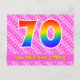 Framsidan av denna glada och uppsluppna födelsedagskortdesign har en stor siffra "70" med ett mönster inspirerat av en regnbågsspektrumgradient. Den har också texten "Grattis på 70-årsdagen," och ett anpassningsbart mottagarnamn. Framsidan har dessutom ett glatt ljusrosa och mörkrosa hjärtform och randigt mönster. Baksidan har ett anpassat födelsedagsmeddelande, eller kan raderas och lämnas tom om ett meddelande ska skrivas för hand istället. Ett anpassat födelsedagskort som detta kan vara ett roligt sätt att fira någon på deras sjuttioårsdag. Kort som detta kan också användas för att bjuda in gäster till en födelsedagsfest eller firande som hålls för någon som fyller 70 år.
