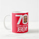 70-årsdagars rödvit anpassningsbar foto namn kaffemugg