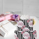 70-årsdagen chic rosa ros svartvit rand presentpapper