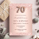 En modern, snyggt och glamorös inbjudan till 70:e födelsedagsfesten. En faux ro guld-metallisk bakgrund tittar med elegant faux guld glitter drop, målardropp. Namn är skrivet med ett modernt skript för färgaden ro guld i mörk, skrivet med stil. Anpassa och lägg till information om party. Nummer 70 är skript med stil som ballong.