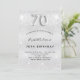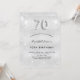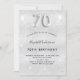 En modern, snyggt och glamorös inbjudan till 70:e födelsedagsfesten. En faux silver-tittar bakgrund, dekorerad med glitter-damm. Anpassa och lägg till ditt namn och information om party. Nummer 70 är skript med stil som ballong.