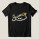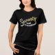 Sjuttio och sensationella, 70-årsdagen för stil i guld ger sjuttio manustexter i guld med vit text på en svart t-shirt. Anpassa den här 70:e födelsedagskalan med ditt eget meddelande. Andra år och matchande artiklar är tillgängliga. © Original design by Sarah Trett for www.mylittleeden.com on Zazzle.