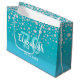 En elegant och glamorös 70-årsdagspressning. Färgaden Faux glitter med faux diamant sprinkle av blå grönt. Mallar för namn, 70 år och ett datum. Födelsedatum eller datum för party/årsdagen. Vit och teal färgad brev. Namn är skrivet med ett handskript i stil.