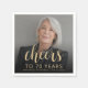 Den här anpassade servetten för 70-årsfirande har en personlig bild på festspecialaren, namn och födelsedag, tillsammans med ordet "Skål" i elegant guldfärgad kalligrafiskrift. En mörk bakgrund hjälper till att få texten att sticka ut. Ett bra sätt att fira någon som fyller sjuttio!