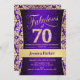 Inbjudan till 70-årsfest i lila och guld.