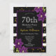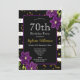 70-årsfest| Svart och guld glitterdesign med lila blomdetalj . Det här är en mall som är redo för dig att lägga till dina festdetaljer i .