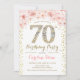 70-års inbjudan för kvinnor. Elegant blomsterdesign i rosablommig rosa, vit och falskt glitterguld. Innehåller dunkelrosa rosor och diamantfont. Perfekt för en stilren vuxen födelsedagsfirande