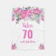 Elegantens utformning för en 70:e födelsedagsfest med rosan "70 och fantastisk" och ett skript namn som är förskönat av en feminin vattenfärg blommor på vit bakgrund. Anpassa ålder, text, namn och bakgrund färg.