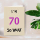 En fin gratulationskort för någon, särskilt för henne (på grund av färgschemat svart - rosa) som firar 70-årsdagen. Det kommer med en rolig citat Jag är 70 så vad, och är perfekt för en person med humor.