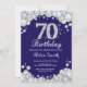 Inbjudan till 70-årsdag. Marinblå och silver glittrande diamant. Elegant inbjudan till födelsedagsfest. Vuxen födelsedag. Kvinnors födelsedag. Mäns födelsedag. För ytterligare anpassning, klicka på "Anpassa den"-knappen och använd vårt designverktyg för att ändra denna mall.