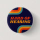 Ännu en groovy defaness-nål från JessicaAmber - fråga om anpassningsbar order! Det här anpassadets runda märke innehåller sloganen Hårda i ett tjockt återreflexteckensnitt. Du kan redigera texten efter behov. Den marinblå och orange designen användor dekorativt böjt linjer för 70-talets vibe. En underbar gåva till mor eller far med nedsatt hörsel. ・ ・ För mer medicintekniska produkter, besök min butik Zazzle.com/JessicaAmberArtist ・ ・ ・ För beställningar av anpassningsbar, meddela mig på Zazzle