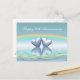Vykort med min konst av två platina hjärtan som flyter på vattnet under en regnbåge. Anpassningsbar text säger "70 år".