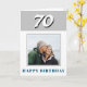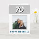 70:e födelsedagarkortet för fotoPersonlig. Personlig 70-årsjubileum för någon som firar 70 år. Den här moderna och enkla designen har åldern, fotot och Grattis på födelsedagen-kortet. Lägg till ditt foto i och meddelande i eller radera det. Du kan också ändra årsnumret.