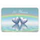 Magnet med min pastelldesign av två platinumhjärtan flytande på vatten under en regnbåge. Anpassadet säger "70 år".