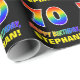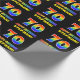 Den här färgstarka, glada och roligt födelsedagskalemetterade pappra designen har ett stort nummer "70" och meddelandet "GRATTIS PÅ FÖDELSEDAGEN", som båda har en regnbågsspektrumövertoning som inspirerade mönster-färgning, tillsammans med en fet gult personlig-mottagare namn. Bakgrunden är svart på färgad. Roligtens födelsedag som är papper som detta kan användas för att figurera en gåva eller present som ges för att fira någons 70-årsdag. [~Z0000475]