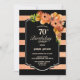 Svart och faux glitter-blommigt, strimlad 70-årsmiddagsinbjudan.