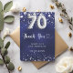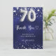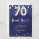 Tack för 70-årsdagen. En marin blå bakgrund färg. Den blå färg är ojämn. Med faux silver-stjärnor. På framsidan: nummer 70 skrivet med ett stil-teckensnitt med ballong. Tack, text, titel och datum. Tillbaka: Anpassa och lägg till tackkort och namn.