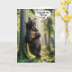 En björn står bara mot en träd som håller en mugg öl med en tass i en solbelyst sommarskog med en humoristisk tal-bubbla under en 70-årsdag. All text kan ändras och åldern ändras.