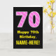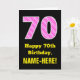 Den här glatta och roligt-födelsedagskalan med hälsningskortet har ett stort nummer "70" med en strimlad mönster som innehåller hjärtformer och färgadens rosa av mörk och är ljus rosa på framsidan. På framsidan finns också hälsning-födelsedagsmeddelandet "Lycklig 70:e födelsedag", och anpassadet namn. Insidan innehåller ett redigerbart hälsning-födelsedagsmeddelande, eller så kan det kanske rensas och lämnas tomt om ett meddelande ska skrivas för hand i stället. Ett sådant här födelsedagskort i anpassningsbarna kan vara ett roligt sätt att skicka önskemål till någon som firar sin 70-årsdag. Det kan också vara ett val av roligt för någon som har en födelsedag som infaller på Alla hjärtans dag (den 14 februari) på grund av dess kärleksfulla hjärtsymboler och färg. [~Z0000434]