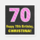 Den glatta och roligt pappra napkin-designen med födelsetal har ett stort nummer "70" som har en strimlad mönster som innehåller hjärtformer som ger färgad ljus rosa och mörk rosa. Det innehåller också hälsning:s födelsedagsmeddelande "Lycklig 70:e födelsedag" och ett eget namn. Pappra servetter som denna kan vara trevliga att ha på ett party som hålls för att fira någons 70-årsdag. Det kan också vara ett val av roligt för någon som fyller en födelsedag som infaller på 14:e feberdagen (Alla hjärtans dag), på grund av dess kärleksfulla hjärtsymboler och färg. [~Z0000436]
