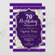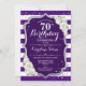 70:e födelsedag - Silver Lila White Rand Ro Inbjudningar