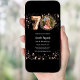 En modern, snyggt fotoinbjudan för en 70:e födelsedagsfest. En klassisk svart bakgrund, dekorerad med ro guld-stjärnor. Anpassa och lägg till information om party.