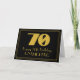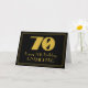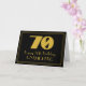 Denna tjugonde roamingera som inspirerats och stil-hälsningskortets födelsedagsmatade vintage har en stor konsthugga som ser inspirerad ut till nummer "70", budskapet "Lycklig 70:e födelsedag", en personlig namn och en gräns mönster som består av tunt linjer på framsidan. Bakgrunden till framsidan är svart färgad. Insidan har ett anpassat hälsning-födelsedagsmeddelande, eller så kan det kanske rensas och lämnas tomt om ett meddelande ska skrivas för hand i stället. Ett sådant här hälsningskort för personligens födelsedag kan användas för att bekräfta någons 70-årsdag. [~Z0000498]