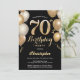 70:e födelsedagen Black and Guld Balloons Confetti Inbjudningar