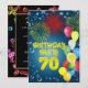 En roligt 70:e födelsedagsfest inbjudan med lycklig färg, ballonger och fyrverkerier. Se hela raden av inbjudningar och kort i min butik.
