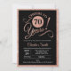 70 födelsedagsfest inbjudan för kvinnor. Elegant inbjudan-kort i svart med faux-ro-folie i guld. Teckensnitt för typografi. Skål till 70 år! Kan vara personlig till vilket år som helst. Perfekt för en milstolpe-vuxen i firande.