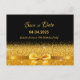 Elegant, klassisk, glamorös och feminin stil 70:e födelsedagsfesten sparar vykortet för datum. En faux guld-färgad-ribba och bög med faux golden glitter och gnistra, lite av lek och lyx för en födelsedag. Svart bakgrund. Med texten: Spara datumet på framsidan skrivet med ett modernt, handskript i stil. Mallar för datum och namn/text.