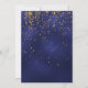 Ett festligt kort och ett kort för elegant 70:e födelsedagsfest inbjudan. En mörk vid midnattsblått färg och ett faux guld ram. Med ett gyllene konetti regn. Mallar för din party-information, golden brev. Den blå färg är ojämn. Baksida: blå bakgrund och konetti regn.