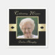 Den 70:e födelsedagsfestens pappra cocktailservetter tillför en 70:e firande en underbar beröring. Ditt foto står i fokus med ord "70-årsjubileet" och namn på födelsedagsjubileet skrivet i ett gyllene färg på svart bakgrund. Copyright henishouseofpaper