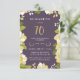 Denna elegant och 3,5 x 5 tum (liten) 70-årsinbjudan innehåller en illustrerad blommigt gräns och numret 70 i guld. Bakgrunden är ett lila färg, men kan anpassas till valfritt färg. Baksidan av inbjudan omfattar ett guld quatrefoil mönster med en passande lila bakgrund som också kan bytas ut. Texten är anpassadet för ditt speciella minneshögtider för milstolpe.