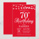 70:e födelsedagsinbjudan med String Ljus. Röd bakgrund. 13:e 15:e 16:e 18:e 20:e 30:e 40:e 60:e 70:e 80:e 90:e 100:e, oavsett ålder.