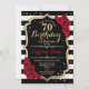 70:e födelsedagsinbjudan Elegant svartvit design med faux glitter. Svartvit rand med röd ros. Perfekt för en snyggt födelsedagsfest.