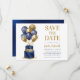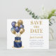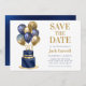 Denna fantastiska manar 705:e födelsedagsfesten Spara datumkortet med en 2-lagrar marin blå kaka och guld med marinblå ballonger och guld, nummer 70 i guld skulle vara perfekt för att be människor att lägga detta speciella datum åt sidan för den kommande 70:e Födelsedagsfesten. Det är traditionellt och klassiskt samtidigt som det är färskt, modernt och contemporary. Baksidan är en samordnande marin blå folie.