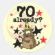 Humoriserade 70-årsdagars T-tröjor, födelsedagsknappar, kort, mugg, klistermärken och andra 70-årspapper och presentartiklar som innehåller en fånig katt i en party-hatt och text som heter "70 redan?".