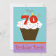 7-0 ljus i rött tar upp 70 födelsedagsfest inbjudan. Ljusen finns på en vit isbildning med färgat rött, orange, akvarium och lavandekonfetti som toppar en chokladkaka sitta på en akvatisk bakgrund. "Födelsedagsfesten" i ord är skriven i en roligt stil under cupkakan. På motsatt sida står ord "70:e födelsedagen" och ställe för alla era 70:e födelsedagsfest inbjudan-uppgifter. En underbar början på en 70:e födelsedagsfest. Copyright henishouseofpaper