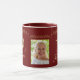 Elegant Red 70 och Fabulous Ornament 70 Birthday Photo Mugg. 70 och fantastisk text i trendigets gyllene skript och en elegant som dekoration på mörkens röda bakgrund. Anpassa den med ditt namn, din ålder och ditt foto och gör personligens elegant till mugg.