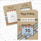 Grattis på födelsedagen 70 och fantastisk rustiskt hälsningskort. 70:e födelsedagskort för honom. Grönt, blått, orange och vitt. *Bakgrund för Kraft-grafik. *Real Kraft-kortet används inte